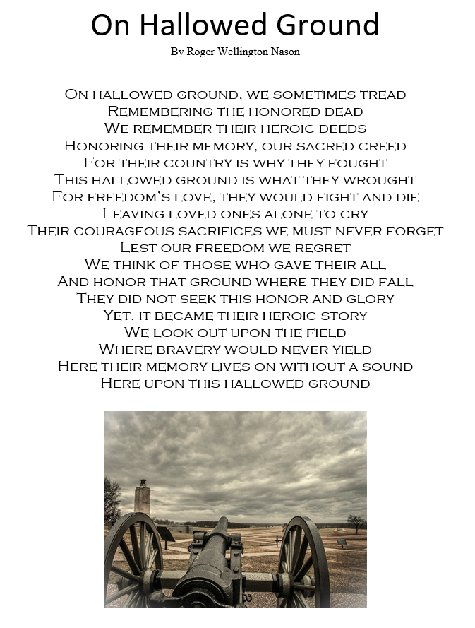 I wrote this poem while visiting the Gettysburg battlefield in Gettysburg, Pennsylvania